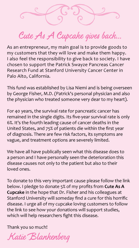 Cute As A Cupcake Return Policy –1– Repack merchandise and enclose the packing list and reason for returning. Be sure to keep a copy of the packing slip for your records. –2– RULES & RESTRICTIONS FOR ONLINE PURCHASE RETURNS 1) Returns must be prepaid and insured by the customer and shipped via the carrier of your choice. 2) When shipping a return, Please include a copy of your invoice. 3) Shipping and Handling charges are non refundable. 4) All products must be unused and undamaged to ensure full credit. We reserve the right to refuse a refund request if it does not comply with this policy. 5) We will not accept CODs or Third Party billing for returned merchandise. All COD packaging will be refused. 6) We cannot be responsible for items that we do not receive. 7) If an item is damaged during shipment to you, please contact us at: Katie@CuteAsACupcake.biz CREDIT EXCHANGES ORDER CANCELLATIONS Items may occasionally be cancelled by our system if there was an issue with the order or in low-stock situations. If an item is cancelled, you will receive an email notification that will explain the reason for the cancellation. You will not be billed for any canceled items.